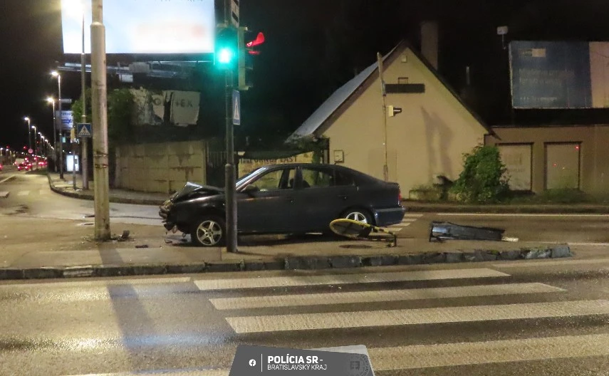 Šofér na jednom z bratislavských sídlisk nafúkal takmer dve promile, vletel na ostrovček a narazil do stĺpu
