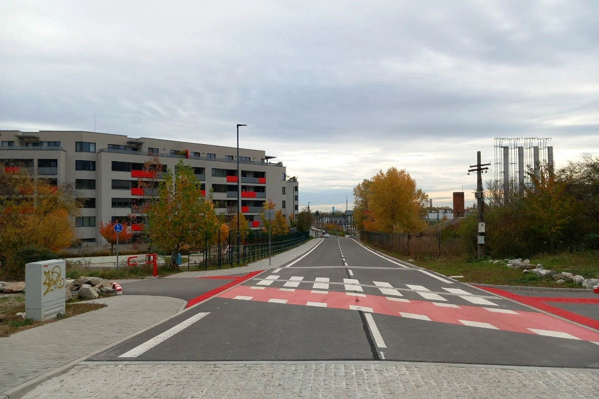 – pôvodne plánovaná dvojprúdová komunikácia sa zúžila, čím vznikla možnosť do budúcna vytvoriť pešie korzo,