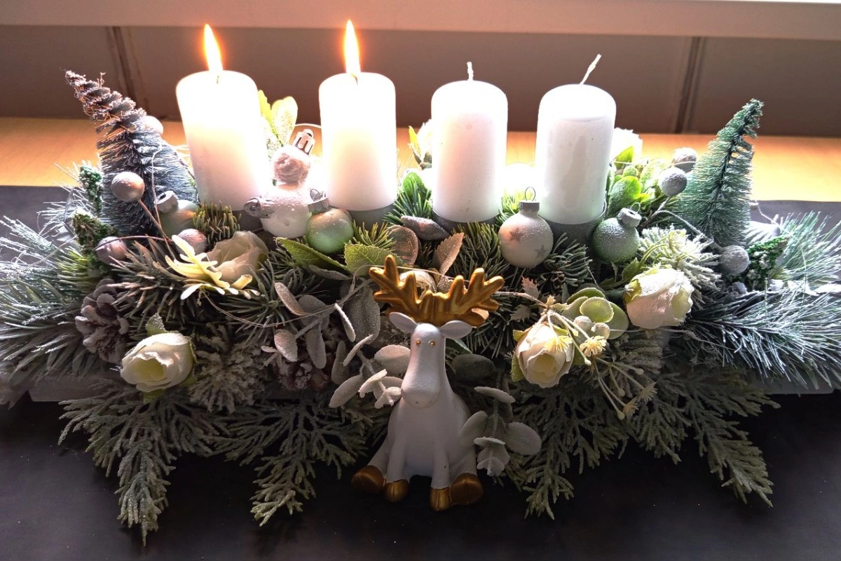 - Odstup od horľavých materiálov – Držte veniec a sviečky čo najďalej od záclon, dekorácií či nábytku