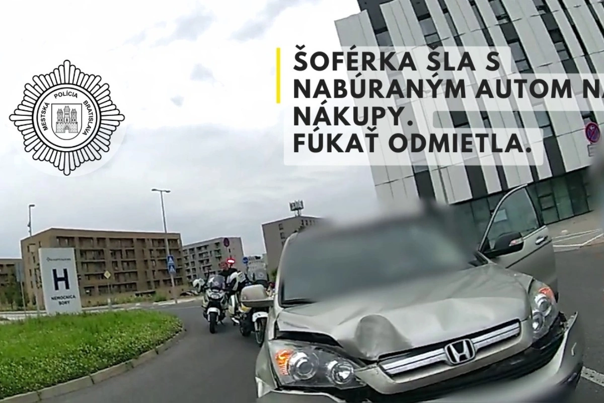 Žena narazila do brány a predtým poškodila dve ďalšie vozidlá. Policajti podozrievali alkohol a vyzvali ju na dychovú skúšku, ktorú odmietla. Hliadka jej zabránila pokračovať v jazde a usmernila dopravu v okolí. Dopravná polícia následne preverila situáciu a všetky škody boli zdokumentované.