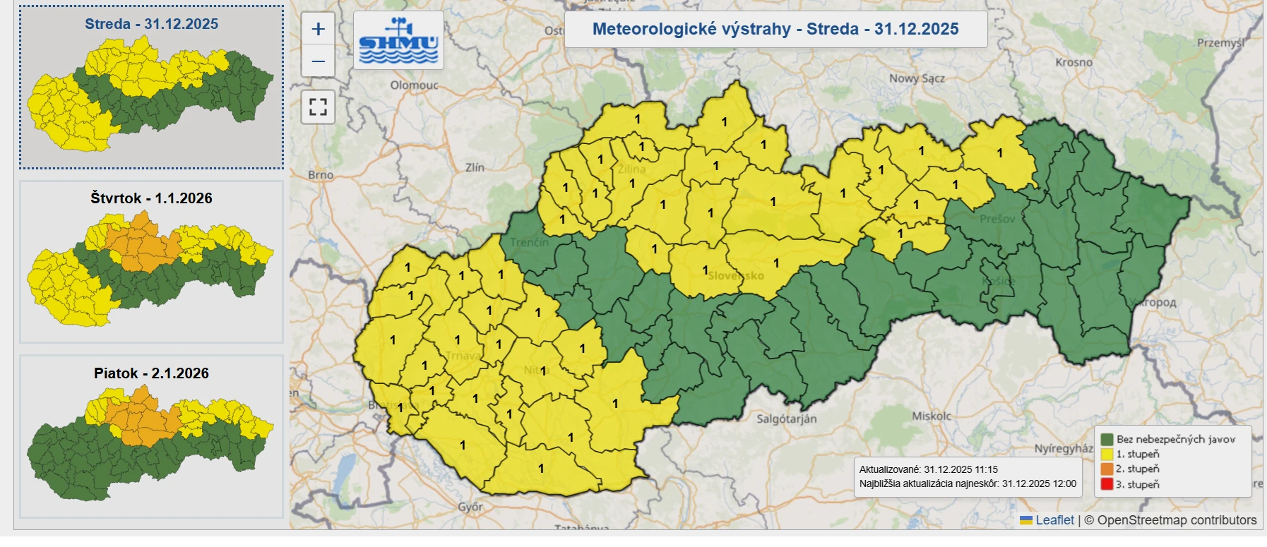 Sneženie sa má v okrese Bratislava začať v utorok 31. decembra približne o 17.00 h a potrvá do polnoci. Podľa výstrahy sa sneh bude vyskytovať ojedinele, najmä vo vyššie položených častiach mesta. Očakáva sa, že napadne približne 5 centimetrov nového snehu. Takáto snehová pokrývka je síce pre toto obdobie bežná, no môže predstavovať riziko pre dopravu a chôdzu po meste.