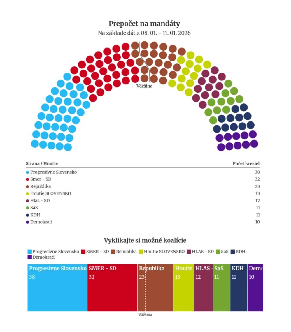 Ak by sa parlamentné voľby konali v prvej polovici januára 2026, víťazom by bolo hnutie Progresívne Slovensko.