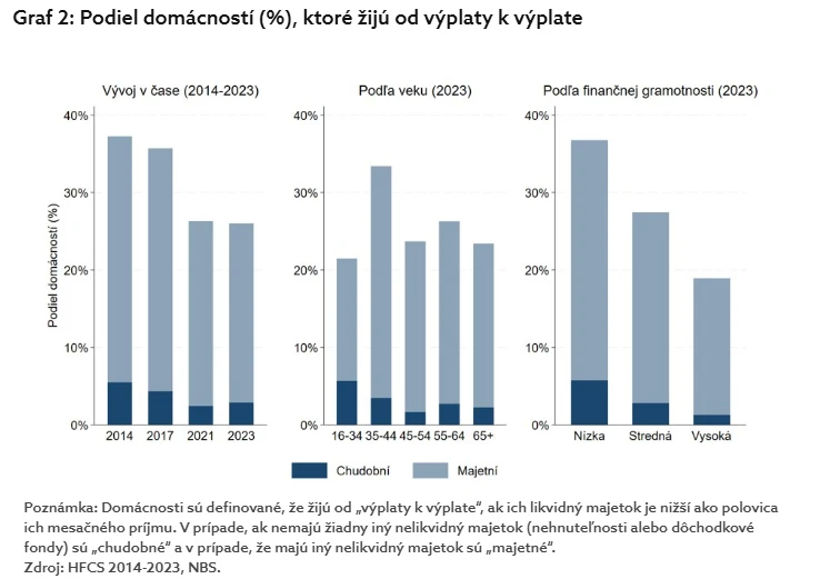 Na papieri vyzerajú slovenské domácnosti bohatšie než kedykoľvek predtým. Nové dáta však ukazujú menej optimistický obraz. Napriek rastu majetku žije takmer štvrtina domácností prakticky od výplaty k výplate a nemá dostatočné finančné rezervy na zvládnutie nečakaných výdavkov, informuje Národná banka Slovenska (NBS).