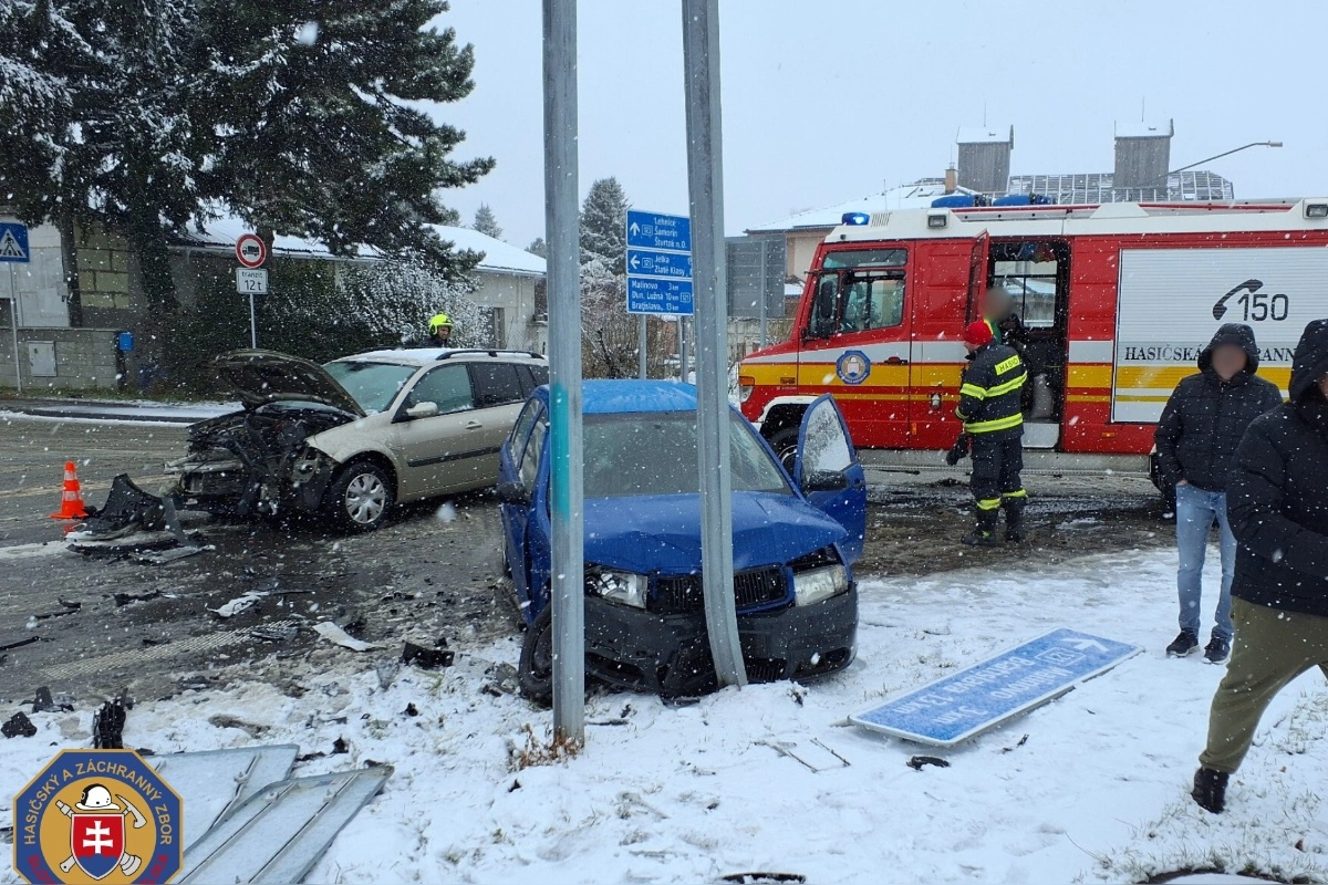 Hrozivá nehoda v obci Tomášov. Pri čelnej zrážke dvoch šoférov zasahovali aj hasiči