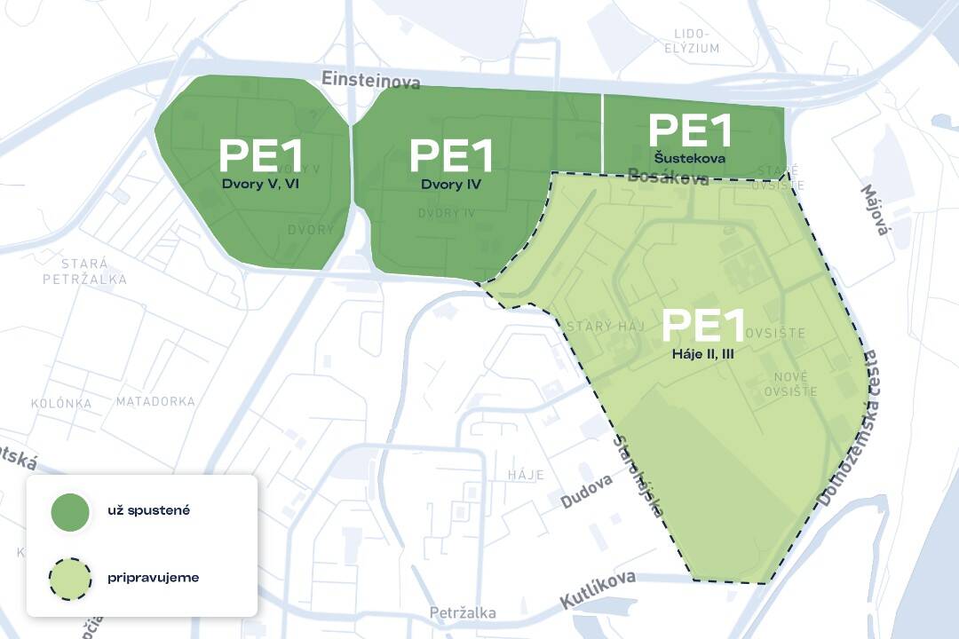 Bratislavský parkovací asistent spolu s mestskou časťou Petržalka pripravujú ďalšiu zónu regulovaného parkovania, a to v lokalite Háje II. a III. ohraničenú ulicami Starohájska, Bosákova, Dolnozemská cesta a Jantárova cesta. Nová zóna PE1 – Háje II. a III. nadviaže na už fungujúce Dvory IV., V., VI. a časť Šustekovej ulice.