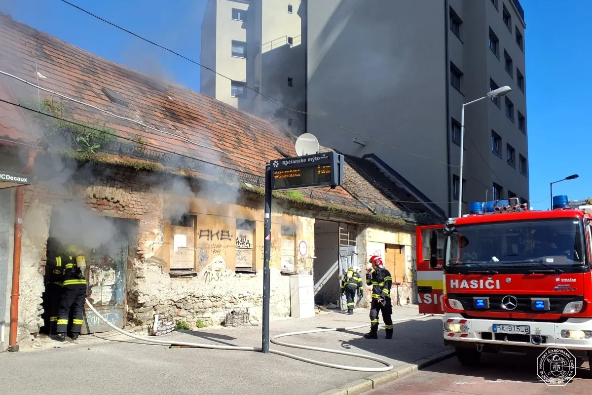 Hasiči v stredu zasahovali pri požiari odpadu na streche opustenej budovy na Mýtnej ulici v Bratislave. Po krátkom lokalizovaní ohňa pokračovali v dohášaní a kontrole ohnísk.