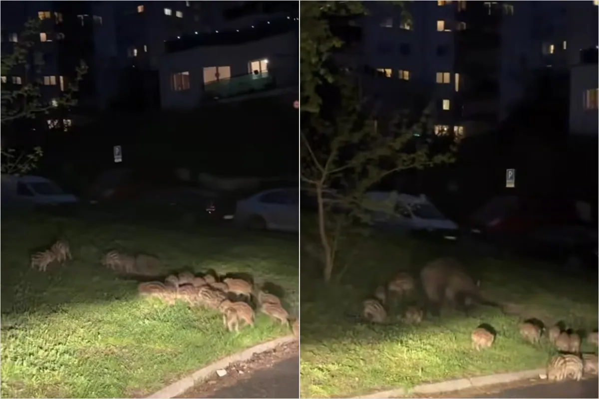 Výskyt diviakov na bratislavských Dlhé diely už miestnych neprekvapuje. Najnovšie ich v nočných hodinách zachytila Tereza, ktorá z auta spozorovala početnú skupinu priamo na sídlisku.