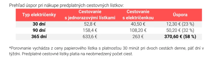 Z ekonomického hľadiska sa predplatné lístky oplatia najmä pravidelným cestujúcim. Pri kúpe ročnej električenky môžu ušetriť viac ako polovicu nákladov v porovnaní s jednorazovými lístkami, konkrétne približne 370 eur.