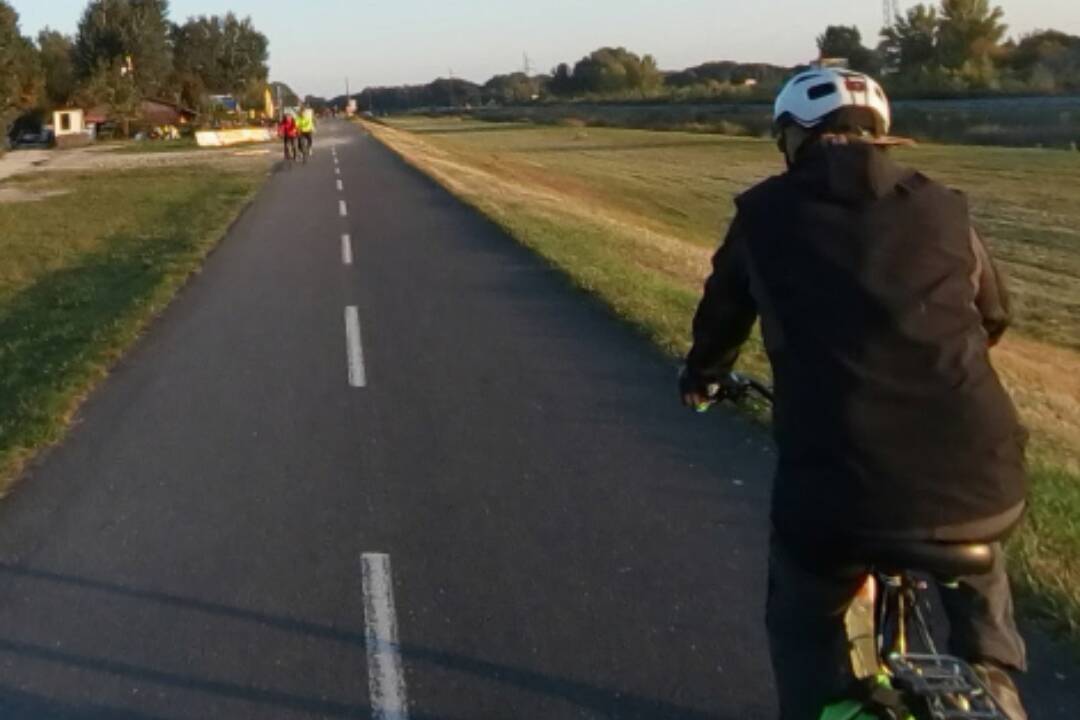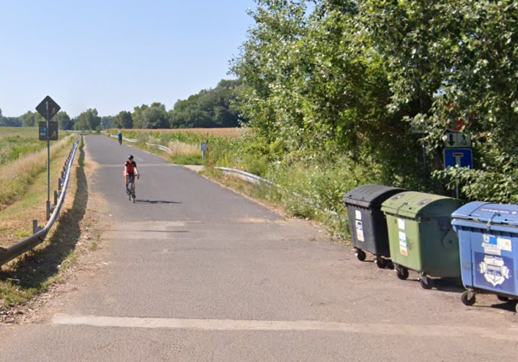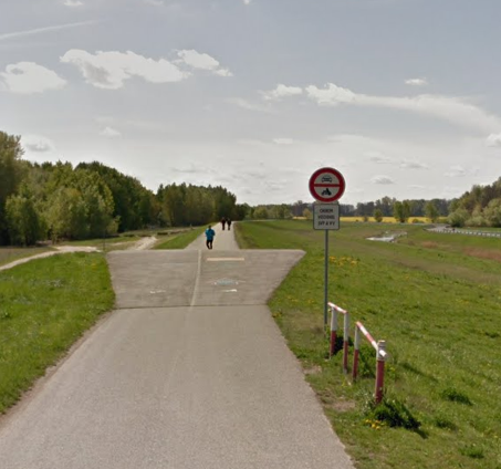 Ako cyklotrasa je označená spodná cesta, trochu ďalej od rieky. Tá vedie súbežne s cestou po korune hrádze, a cyklisti by v prvom rade mali využívať práve túto spodnú komunikáciu. Ako je to s prístupom chodcov na cyklotrasu? Opäť je dôležité to, čo hovorí vyhláška: ak by na jej začiatku bola osadená dopravná značka označujúca vyhradenú cestu pre cyklistov - bicykel v modrom poli, v takom prípade by chodec pohybom po nej riskoval pokutu. Ak táto značka chýba, na cestu majú podľa vyhlášky prístup aj ostatní účastníci premávky.