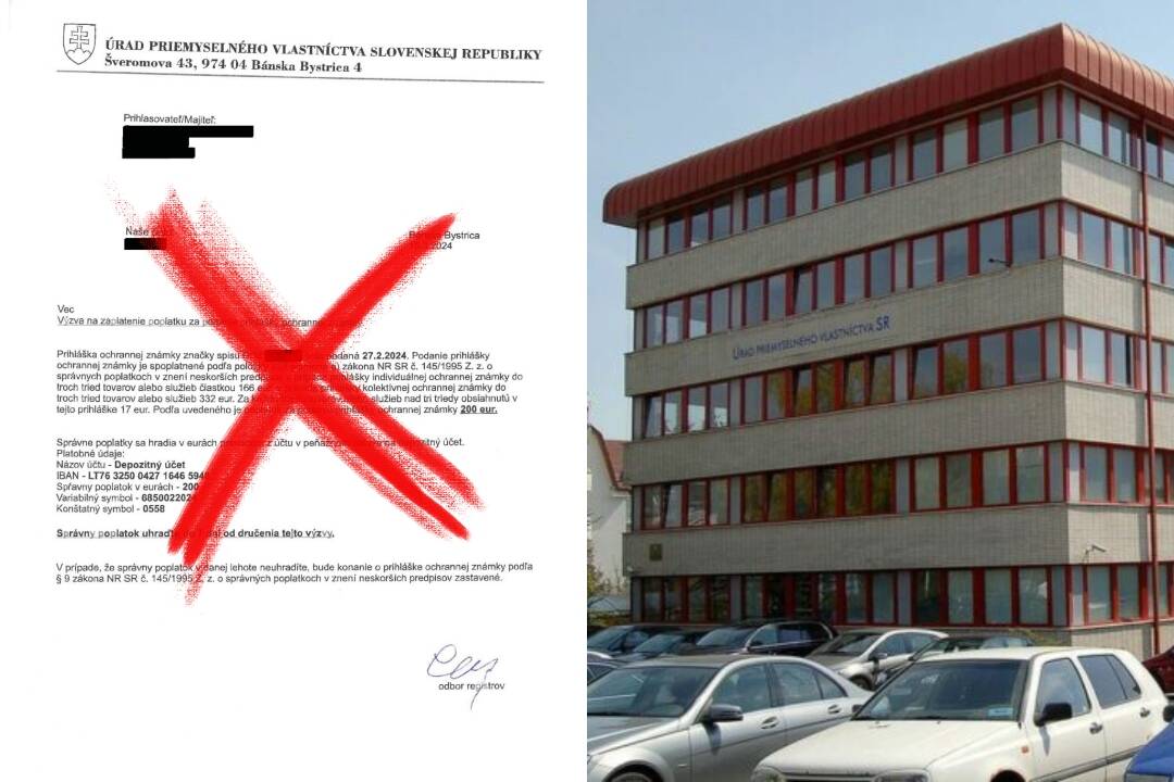 „List napodobňuje komunikáciu Úradu priemyselného vlastníctva Slovenskej republiky (ÚPV SR), pričom používa oficiálne údaje o prihláške ochrannej známky zverejnené vo webregistroch / Vestníku ÚPV SR," priblížili z úradu.