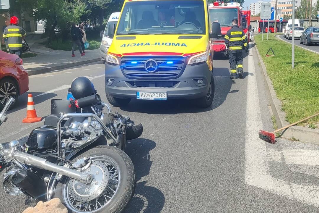 Nehoda na frekventovanej ulici v Ružinove. Motocykel sa zrazil s osobným autom