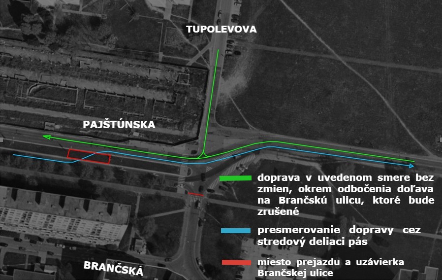 Polícia informuje, že z tohto dôvodu bude realizovaná uzávierka Brančskej ulice. Dopravu po Pajštúnskej ulici presmerujú do opačnej strany cez stredový pás. „Vodičom v tejto súvislosti odporúčame pozorne sledovať prenosné dopravné značenie,“ napísala polícia na Facebooku.
