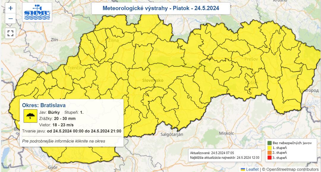 Bratislavčanov a ľudí z priľahlých obcí čaká daždivý deň. Slovenský hydrometeorologický úrad vydal výstrahu prvého stupňa pred búrkami, hoci sú v Bratislavskom okrese menej pravdepodobné ako na zvyšku nášho územia. Očakávať môžete prudký lejak, napadne približne 20 až 30 milimetrov zrážok.
