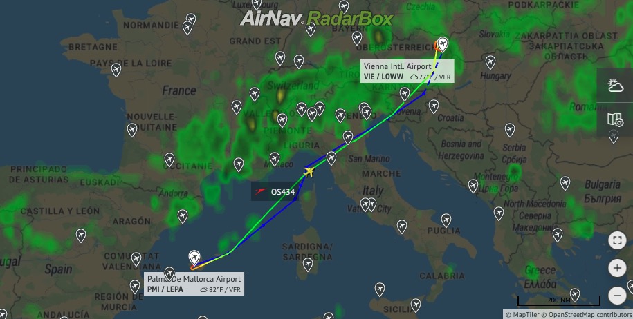Lietdalo po vzlete z Palmy de Mallorca letelo vo výške 34 tisíc stôp, čo je viac ako 10 kilometrov. Na linku bol nasedený 23-ročný Airbus A320. Lietdalo šťastne pristálo na viedenskom letisku krátko pred 18.00 po lete, ktorý trval takmer dve hodiny.