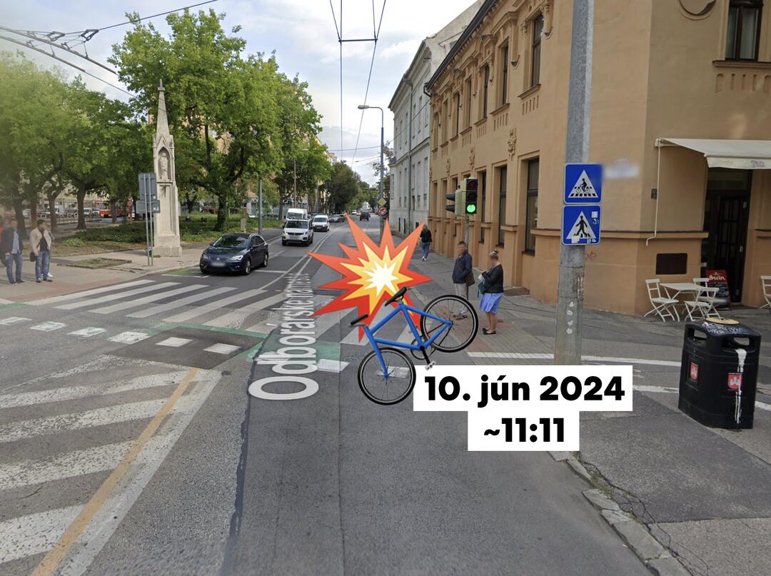 Kolízia auta s cyklistom na Odborárskom námestí, vodič ani nezastavil. Bol za volantom Jožo Ráž?, šíri sa na facebooku