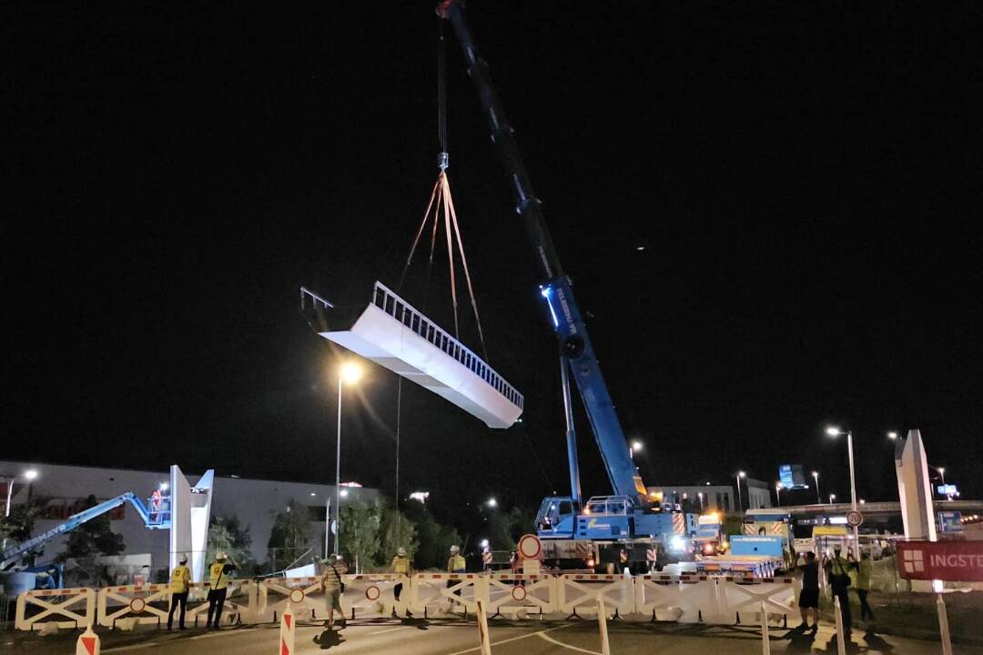 „Most stavia súkromný investor (Avion), slúžiť bude primárne pre chodcov, v budúcnosti by naň mala nadviazať aj cyklotrasa. Vstup na most bude zabezpečený aj výťahmi,“ informuje starosta Ružinova Martin Chren. Hlavné teleso mosta začali osádzať žeriavom približne jedenástej večer a v priebehu noci už most stál ako mal.