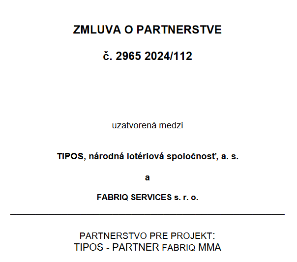 Centrálny register zmlúv mu dáva opäť za pravdu. Tipos podpísal zmluvu s Fabriq Services 11. júna a v rovnaký deň bola zmluva aj zverejnená. Aj v tomto prípade ide o zmluvu o partnerstve a jej celková hodnota znie na 36 tisíc eur.