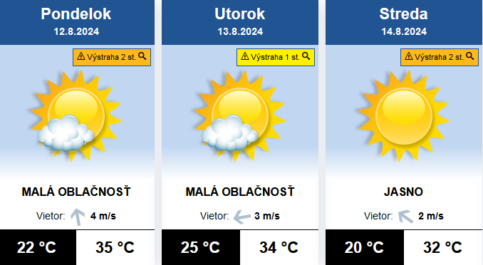 SHMÚ vydal na prvé tri dni nového týždňa výstrahu pred horúčavami. V pondelok a stredu výstrahu druhého stupňa, v utorok o jeden stupeň nižšiu.