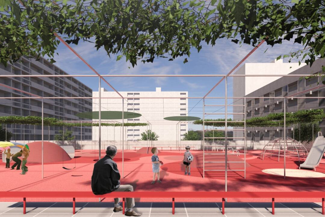 Architekti z 2M ateliéru pripravili návrh, ktorý rešpektuje pôvodný priestor a zároveň rieši komplexné zadanie terasového námestia na sídlisku.