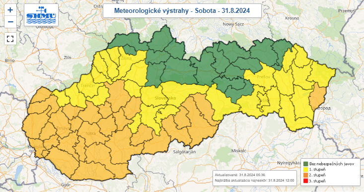 Výstrahy v kraji, Zdroj/SHMÚ.sk
