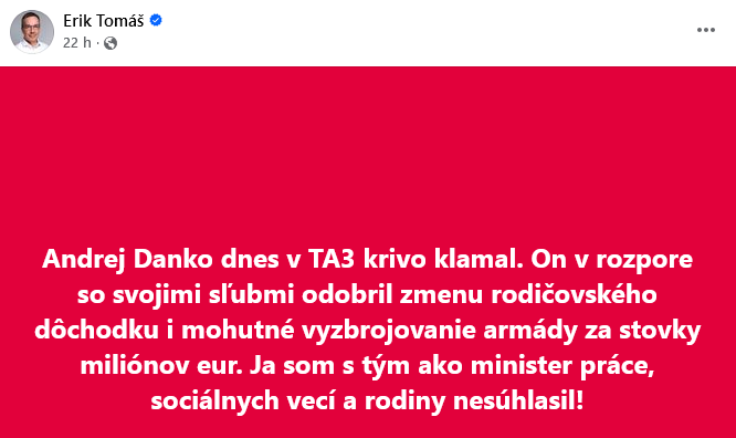 Danko počas víkendu v televíznych diskusiách Tomáša kritizoval za nový návrh minimálnej mzdy vo výške 1000 eur. To by podľa šéfa SNS zlikvidovalo podnikateľov a firmy. Najnovšie je predmetov sporu aj 13. dôchodok, ktorý podľa Tomáša ohrozuje práve SNS. Odpoveď ministra práce? Problémy v koalícii musí hasiť premiér Fico.