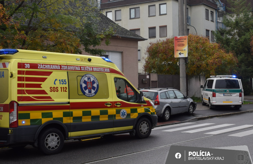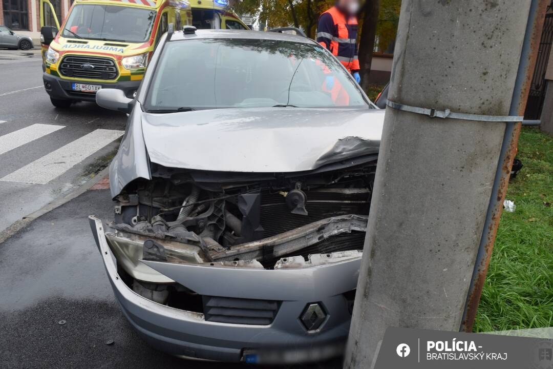 FOTO: Záchrana života na Mierovej ulici. Dôchodca autom nabúral do elektrického stĺpa, ostal v bezvedomí