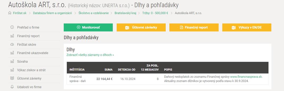 Topky informujú aj o prípade pani Moniky, ktorá za synov kurz zaplatila 900 eur vopred, ale stihol absolvovať len teoretickú časť. Peniaze im autoškola vrátiť nevie, pretože má zablokované účty. Kurz bude musieť absolvovať odznova a zaplatiť ho nanovo. Autoškola Art má aktuálny daňový dlh 22-tisíc eur a svojich problémoch vedela už dlhšie, napriek tomu kurzy naďalej ponúkala aj tento mesiac.