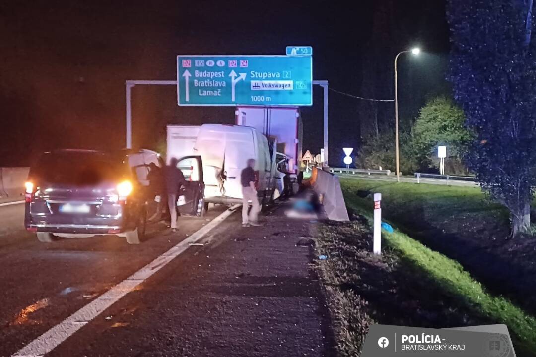 K tragickej dopravnej nehode došlo dnes v noci v blízkosti odpočívadla Stupava na diaľnici D2. Vodič dodávky zozadu narazil do nákladného vozidla a utrpel zranenia, ktorým podľahol. Na diaľnici následne vznikala zápcha, nabúrané vozidlá sa záchranným zložkám podarilo odpratať až ráno.