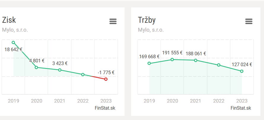 Podľa Finstatu má spoločnosť Mylo jedného zamestnanca a minulý rok bola v strate 1 775 eur. Obchodný register vraví, že ju vlastnia spoločníci Barbora Gažová a Štefan Gažo.