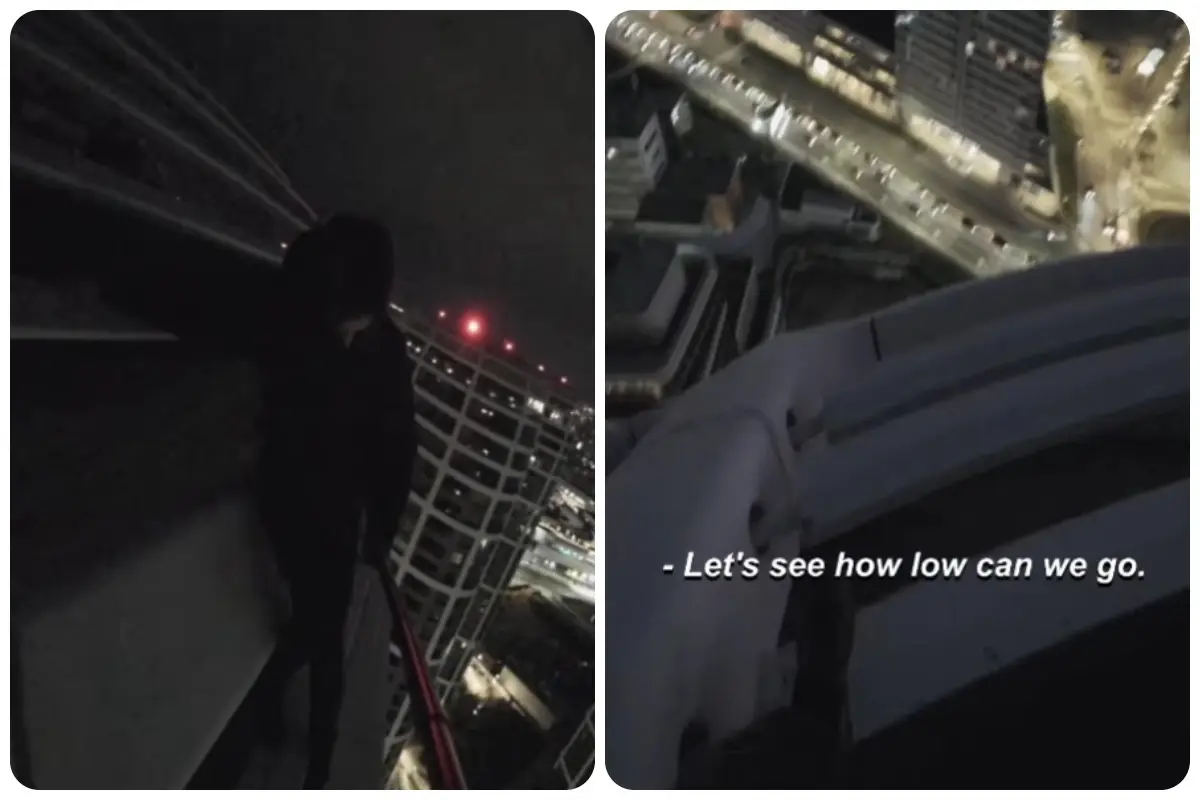 Na záberoch vidieť, ako sa šplhá po rebrinách vrcholu veže a pod sebou má nočné mesto ako na dlani. Reakcie na jeho počin boli rôzne. Kým niektorí jeho sledovatelia oceňujú jeho odvahu, iní hovoria, že vyliezť na strechu Skyparku je už za čiaru.