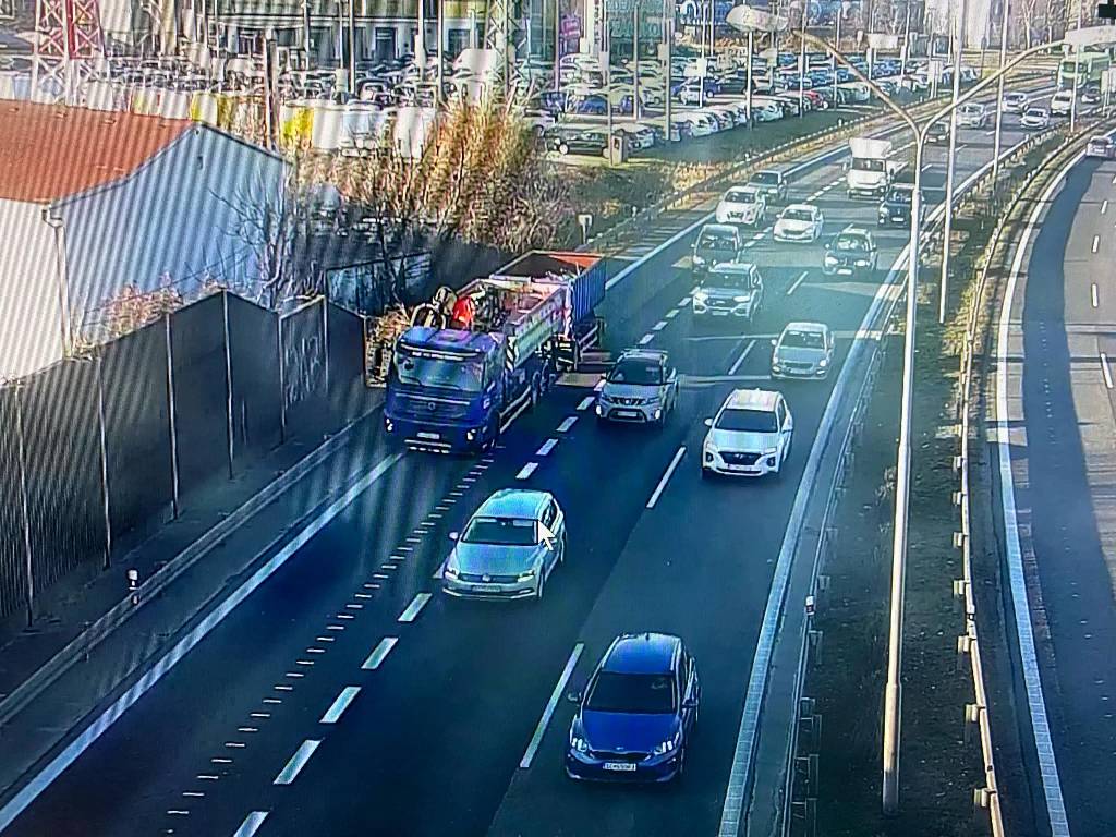 Okrem toho zvýšte opatrnosť aj na bratislavskej diaľnici D1 na úrovni Darexu v smere na Zlaté piesky. V pravom pruhu zavadzia odstavený kamión, kryje ho svetelná šípka.