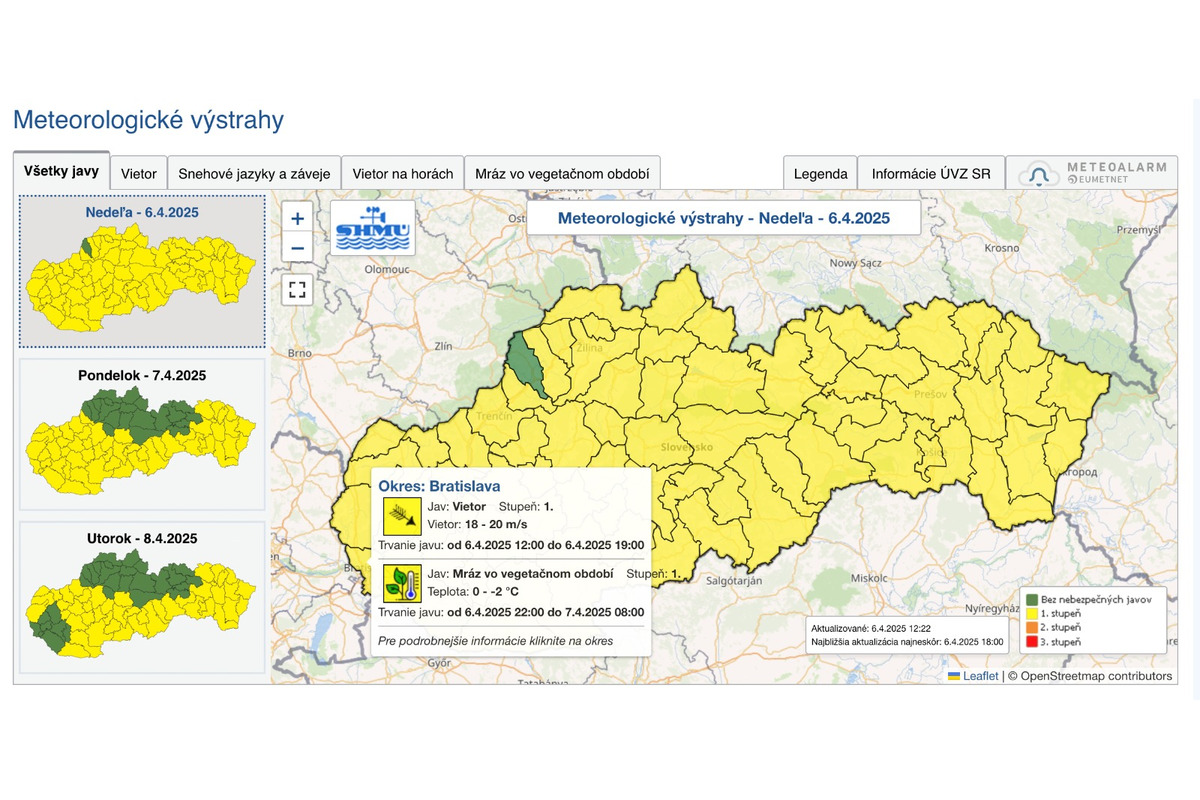Počasie v Bratislavskom kraji prešlo prudkou zmenou, slnečnú jar vystriedalo extrémne počasie. Slovenský hydrometeorologický ústav (SHMÚ) vyhlásil pre celý kraj prvý stupeň výstrahy pred silným vetrom a mrazom.