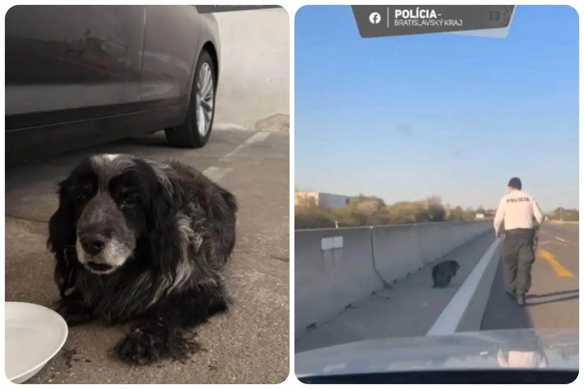 VIDEO: Záchrana života na diaľnici. Bratislavskí policajti pomohli vystrašenému psíkovi