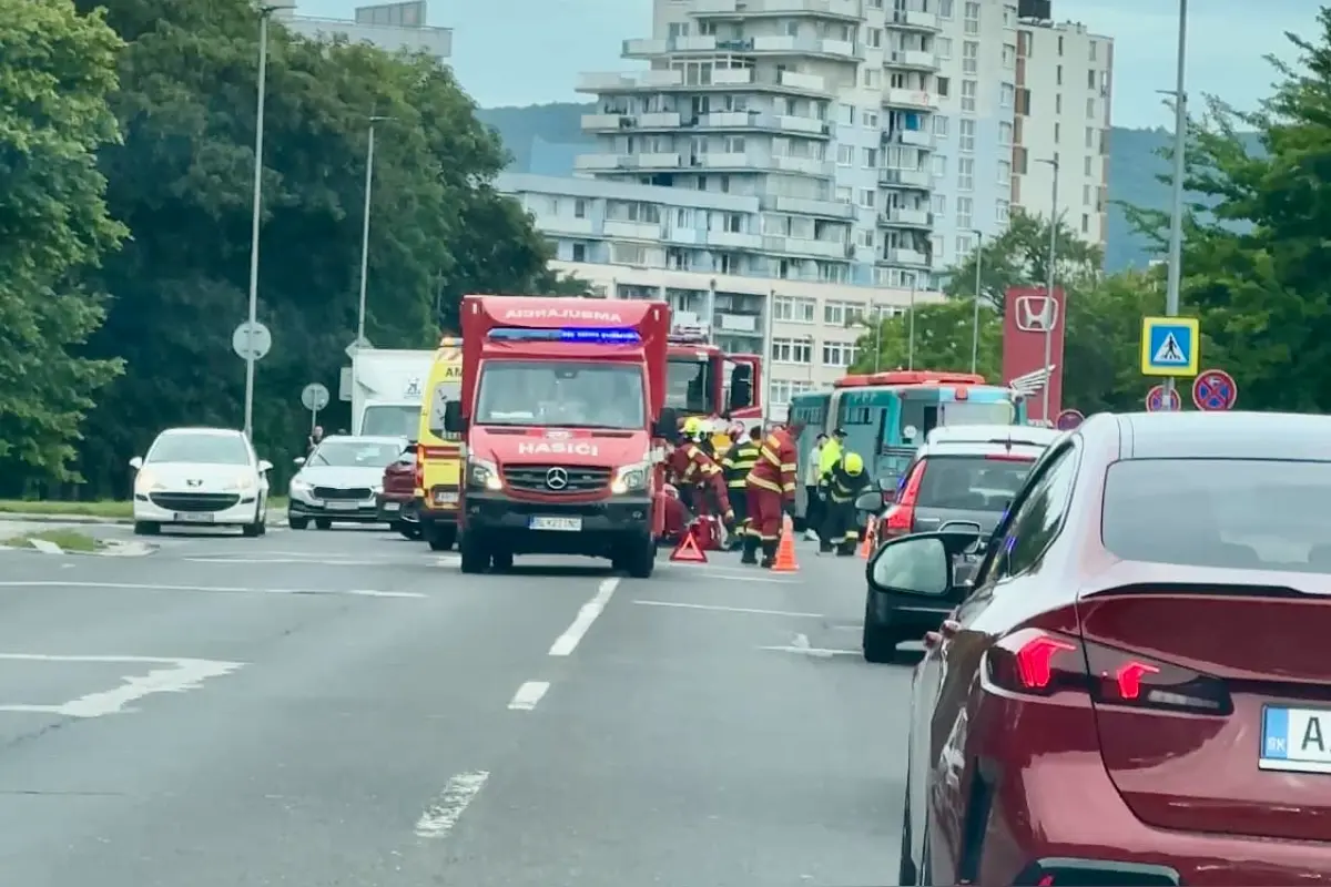 V Bratislave na Tomášikovej pri predajni Honda sa zrazilo osobné auto s motorkárom, úsek je ťažko prejazdný, zvýšte tam opatrnosť.