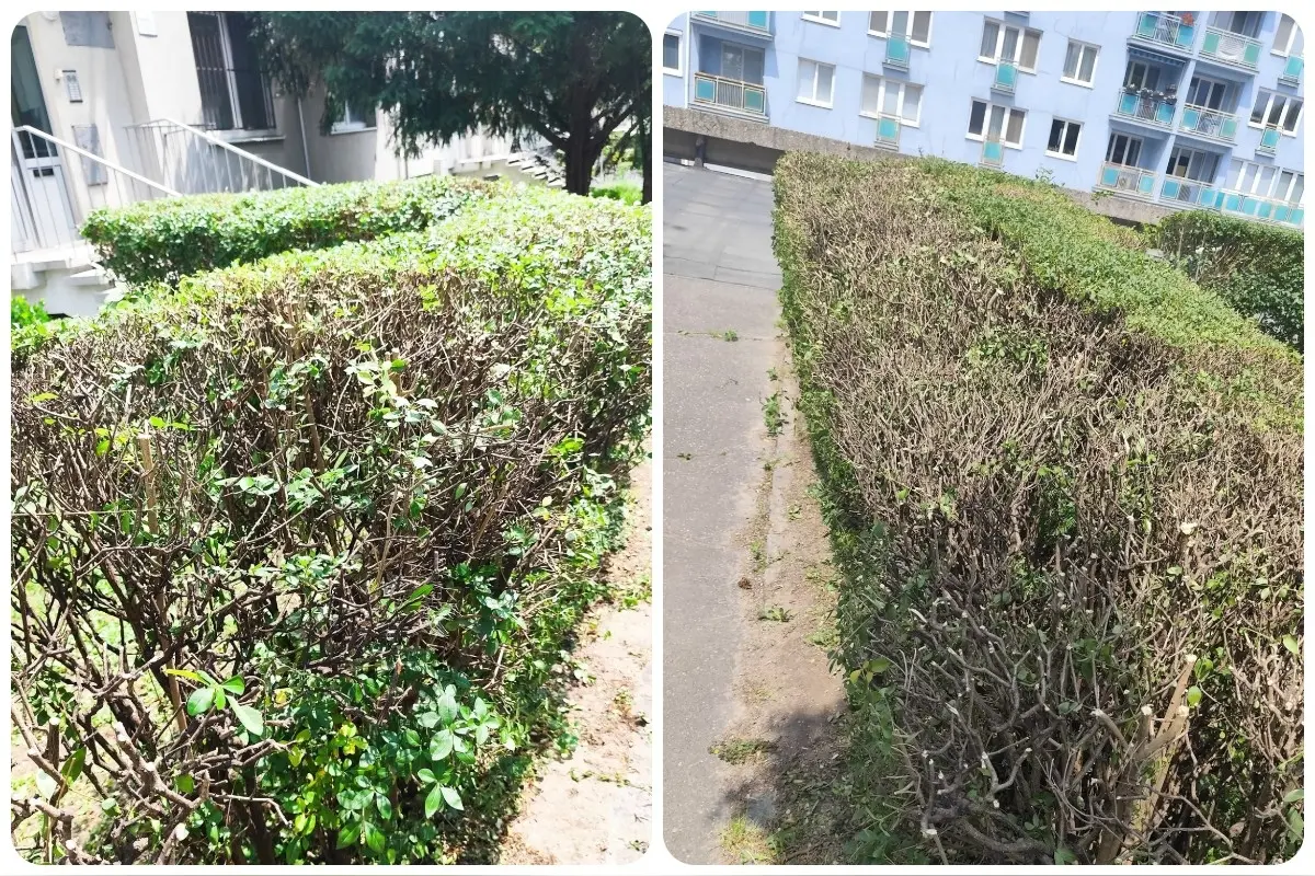 Fotografiu kríkov zverejnila Katarína a prácu podniku označila za ničenie bez rozmyslu. „Vo vnútrobloku na Muškátovej sa pohybuje raketový inžinier, ktorý úplne a bez rozmyslu likviduje živé ploty až na staré drevo. V teple, ktoré prichádza bude trvať neuveriteľne dlho, kým sa kríky pozbierajú. A to len preto, lebo niekto povedal rež, ale už nedohliadol na to, ako a kde,“ opisuje situáciu Katarína a zároveň vraví, že sa ako rezidenti o vnútroblok príkladne starajú.