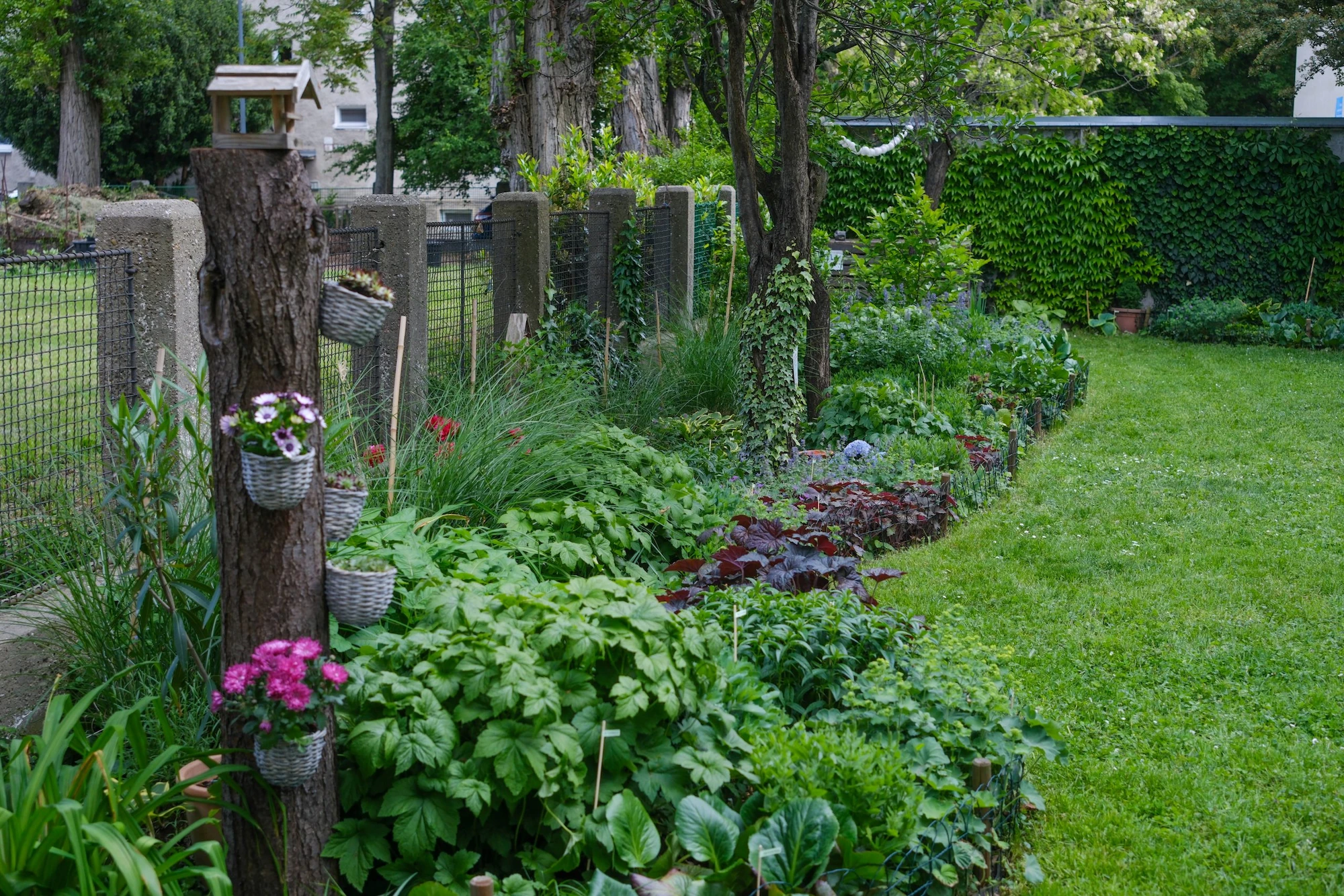 Vo svojej predzáhradke rozšírili trvalkový záhon, zasadili živé ploty okolo šedivých garáží, vyrobili si zvýšené záhony na paradajky, jahody a bylinky, zasadili jedlé kríčky, vysadili ružovú záhradku, inštalovali sme hmyzí hotel, búdku na kŕmenie vtákov a kompostér na záhradný aj domáci bioodpad, s ktorým hnoja predzáhradku. Nachádzajú sa tu aj dve nádoby na zber dažďovej vody, z ktorých polievajú kvetiny v čase sucha.