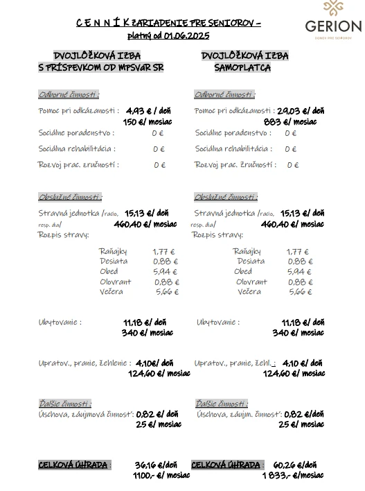 Zariadenie Gerion na Borskej ulici získalo kolaudačné rozhodnutie a čaká na ukončenie registrácie ako poskytovateľa sociálnej služby na Bratislavskom samosprávnom kraji. „Po registrácii vieme do zariadenia prijímať prvých klientov, čo odhadujeme na druhú polovicu mesiaca jún,“ uviedol Tomáš Lendel, štatutár zariadenia.