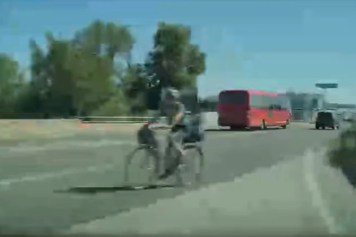 Kamera nasmerovaná na cestu zachytáva moment, keď vodič ide zákrutou a zrazu sa mu priamo oproti – v protismere – objaví cyklistka. Len kúsok od kapoty a bez možnosti včasnej reakcie sa situácia našťastie skončila bez nehody. Obaja pokračovali v jazde ďalej.