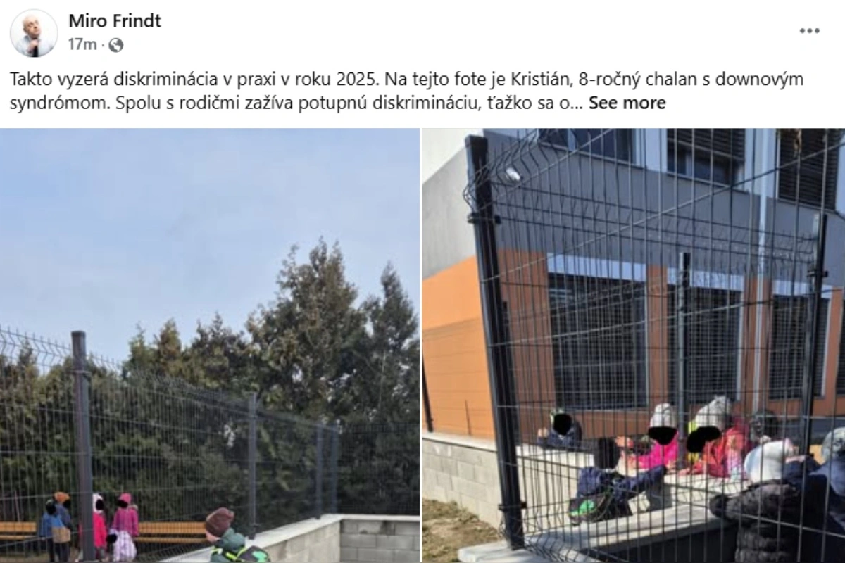 Novinár Miroslav Frindt z PubliQ upozornil na diskrimináciu, ktorú zažíva len trojročný chlapec s Downovým syndrómom. Zverejnil fotografiu, na ktorej vidieť malého Kristiána, ako stojí za plotom školskej družiny, zatiaľ čo sa ostatné deti na druhej strane hrajú.