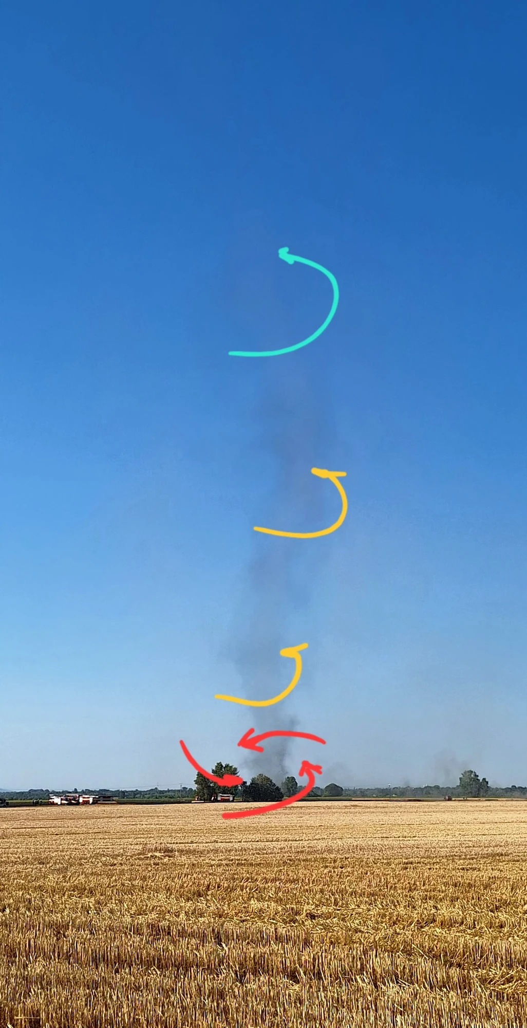 Dym z požiaru bolo pre slnečné a bezoblačné počasie možné vidieť aj z väčšej diaľky. Okrem toho sa tu objavila aj jedna zaujímavosť – vzdušný vír. Ten je celkom častý na otvorených plochách počas jasných a málo veterných dní s vyššími teplotami.