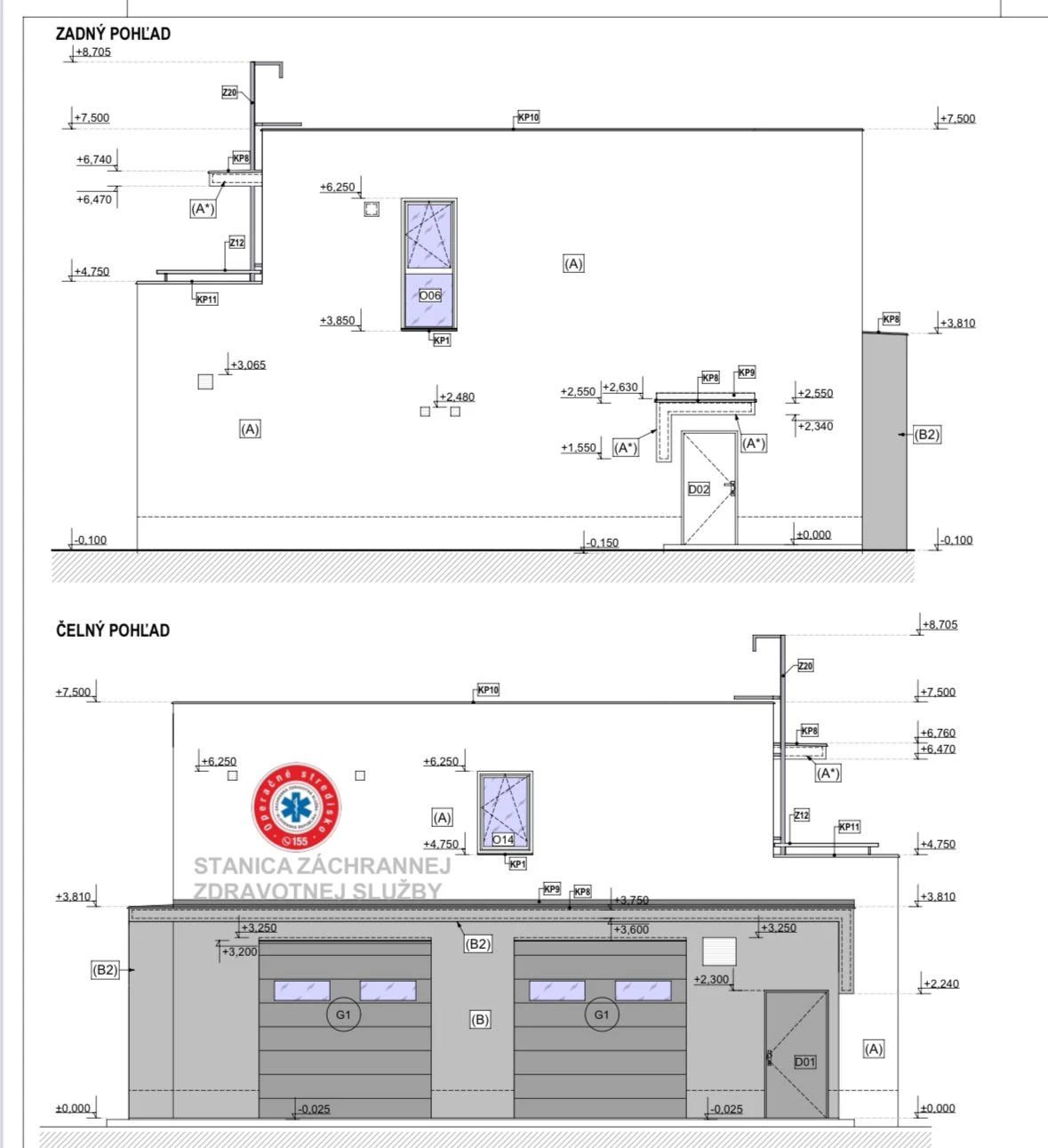Prízemie bude pozostávať z garáže pre sanitky, skladových priestorov či technologických miestností. Prvé poschodie bude určené pre personál ambulancií záchrannej zdravotnej služby.