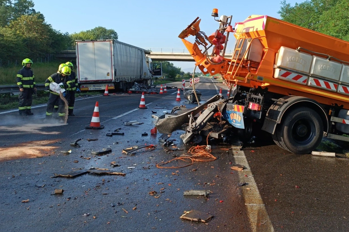 Na D2 za Lozornom smerom do Bratislavy narazilo nákladné auto do cestárskeho vozidla