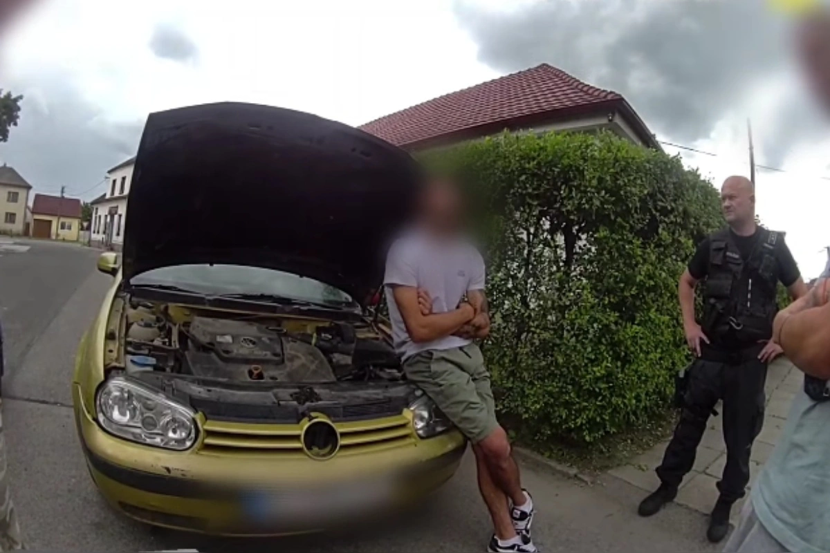 Problémy s kapotou či so zákonom? Policajti počas hliadky v centre Stupavy narazili na nezvyčajnú situáciu, ktorá sa zo zdanlivo bežného technického problému vyvinula do podozrenia z viacerých priestupkov aj trestných činov. Na Námestí SNP stálo v protismere odstavené vozidlo značky Volkswagen Golf, pri ktorom sa nachádzali dvaja mladí ľudia.