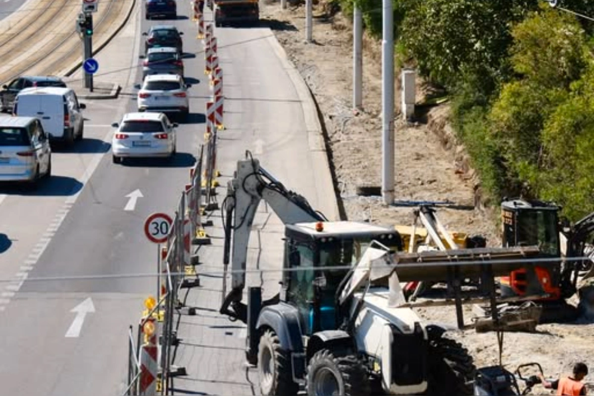 Pre prerábku trolejbusovej trate v Karlovej Vsi uzavrú jazdný pruh. Ľudia kritizujú stĺpy na nových chodníkoch