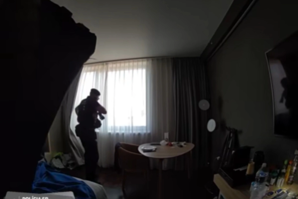 Tam sa mal v jednej z izieb nachádzať muž, ktorý sa mal podľa pracovníkov recepcie hotela po jeho chodbách a v blízkosti výťahov pohybovať s krátkou strelnou zbraňou v ruke. Policajti sa presunuli k izbe, kde vo dverách vyzvali muža, aby im ukázal ruky a ľahol si na zem. Policajtov však nepočúval, a tak museli použiť donucovacie prostriedky.
