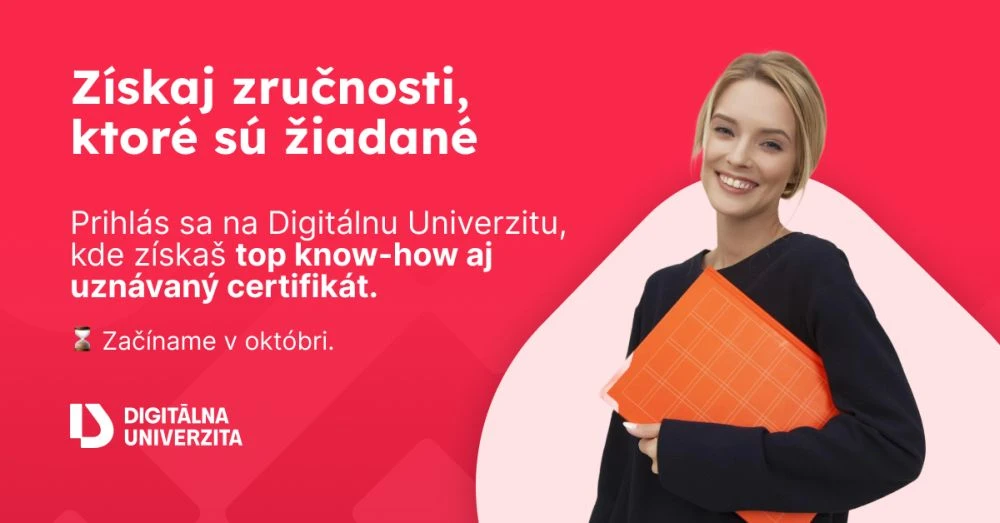 Chcete aj vy pracovať v žiadanom odbore, ktorý prináša stabilitu, slobodu aj zaujímavú prácu? Prihláste sa do nového ročníka Certifikovaného štúdia Digitálnej Univerzity, ktorý štartuje už v októbri. Prihláste sa teraz.