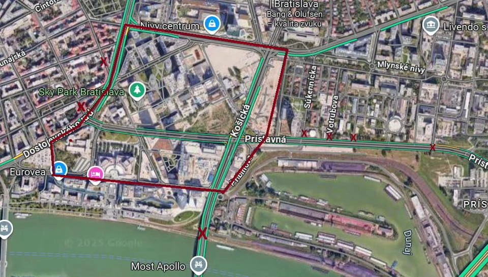 „V utorok predpoludním v čase 09:00 - 11:00 bude okolie Mlynských Nív, Mosta Apollo a Dostojevského radu bez obsluhy MHD. Podrobné obmedzenia zverejníme v najbližších hodinách,“ uvádza DPB.