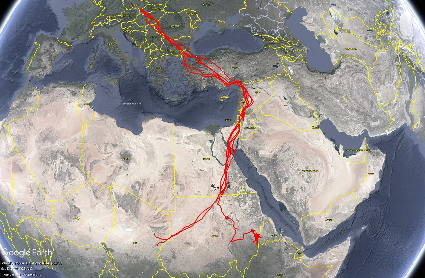 V Afrike je však slabšie pokrytie siete GSM, preto sa SOS dozvedá o bocianoch a ich pohybe len v dňoch, kedy sa pohybujú na miestach s dobrým „signálom“. „Už teraz vieme, že obsadili rôzne regióny Afriky. Najzápadnejšie do Čadu zaletel Marcinko a Janek a najvýchodnejšie Máňa do Eritrey. Delí ich viac ako 1600 km vzdušnou čiarou,“ uvádza SOS.