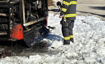 Požiar autobusu v Dúbravke. Zhorel v strede križovatky, na mieste zasahovali hasiči