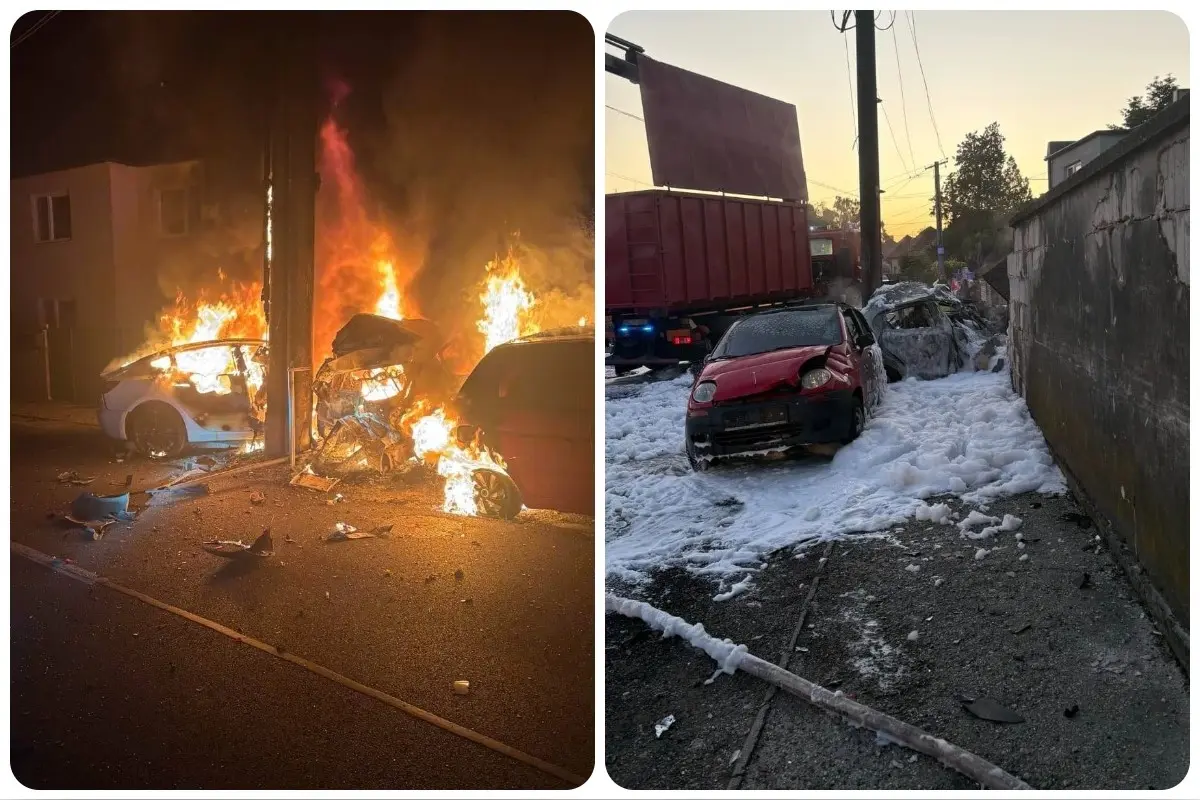 Masívny požiar vo Veľkom Bieli. Po dopravnej nehode začali skoro ráno horieť tri autá